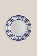 - 1 Adet Büyük Servis Tabağı (27 cm): Kenarları özel mavi desenli, orta kısmı sade beyaz tasarım.