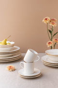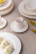 - 6 Adet Fincan Tabağı (12 cm): Fincanla bütünleşen, altın detaylı zarif sunum yüzeyi.