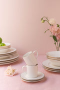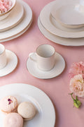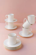 - 6 Adet Fincan Tabağı (12 cm): Fincanla bütünleşen, gümüş detaylı zarif sunum yüzeyi.